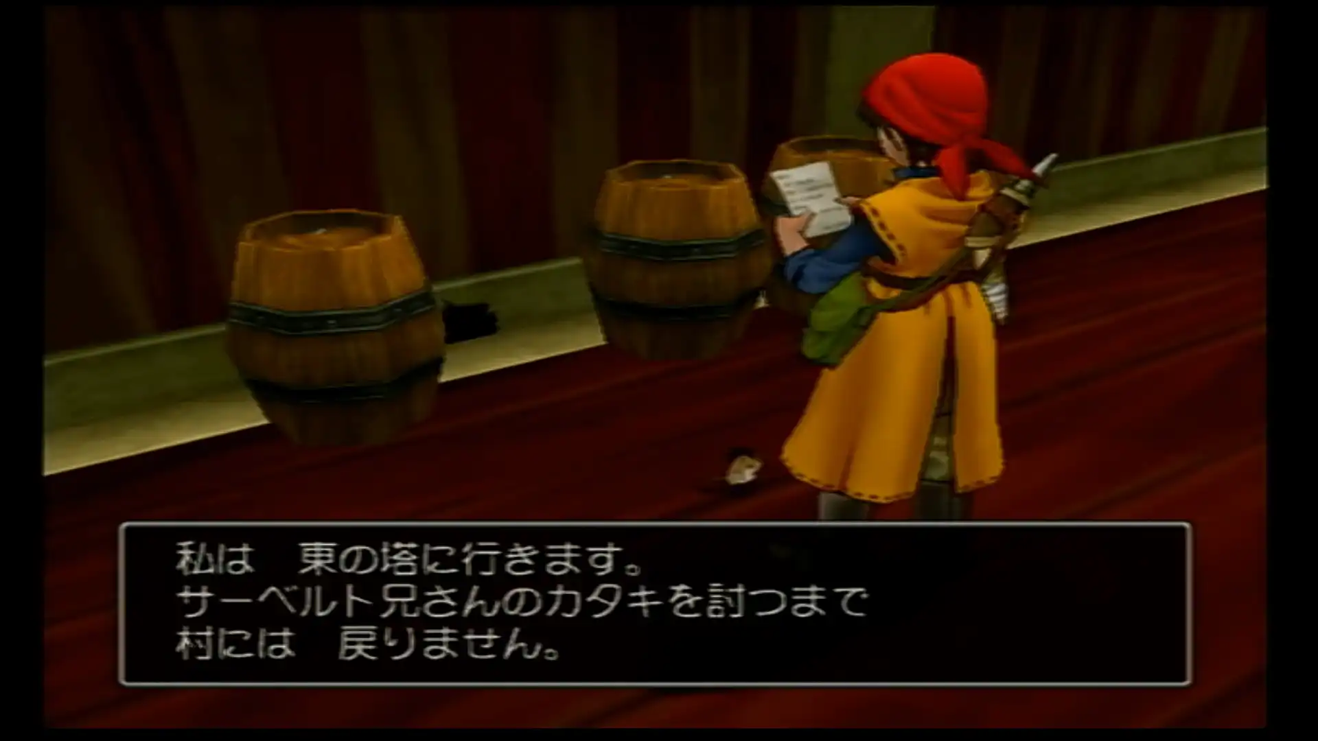 ゼシカの部屋には彼女が書いた手紙が。トーポに回収させて、主人公のもとへ戻る。
