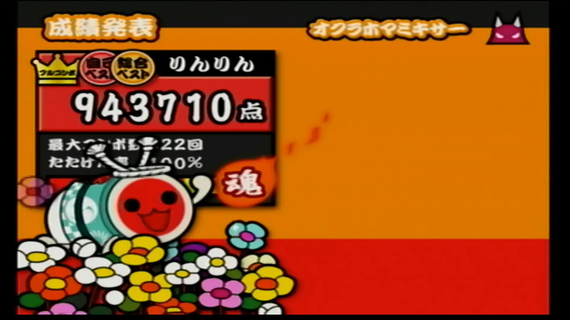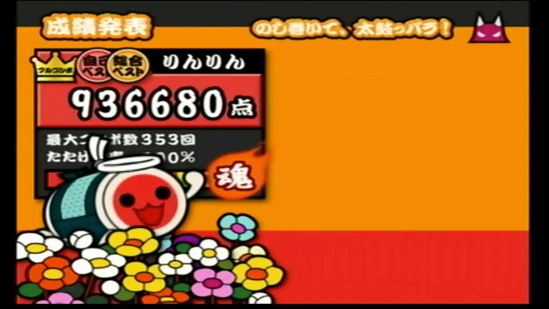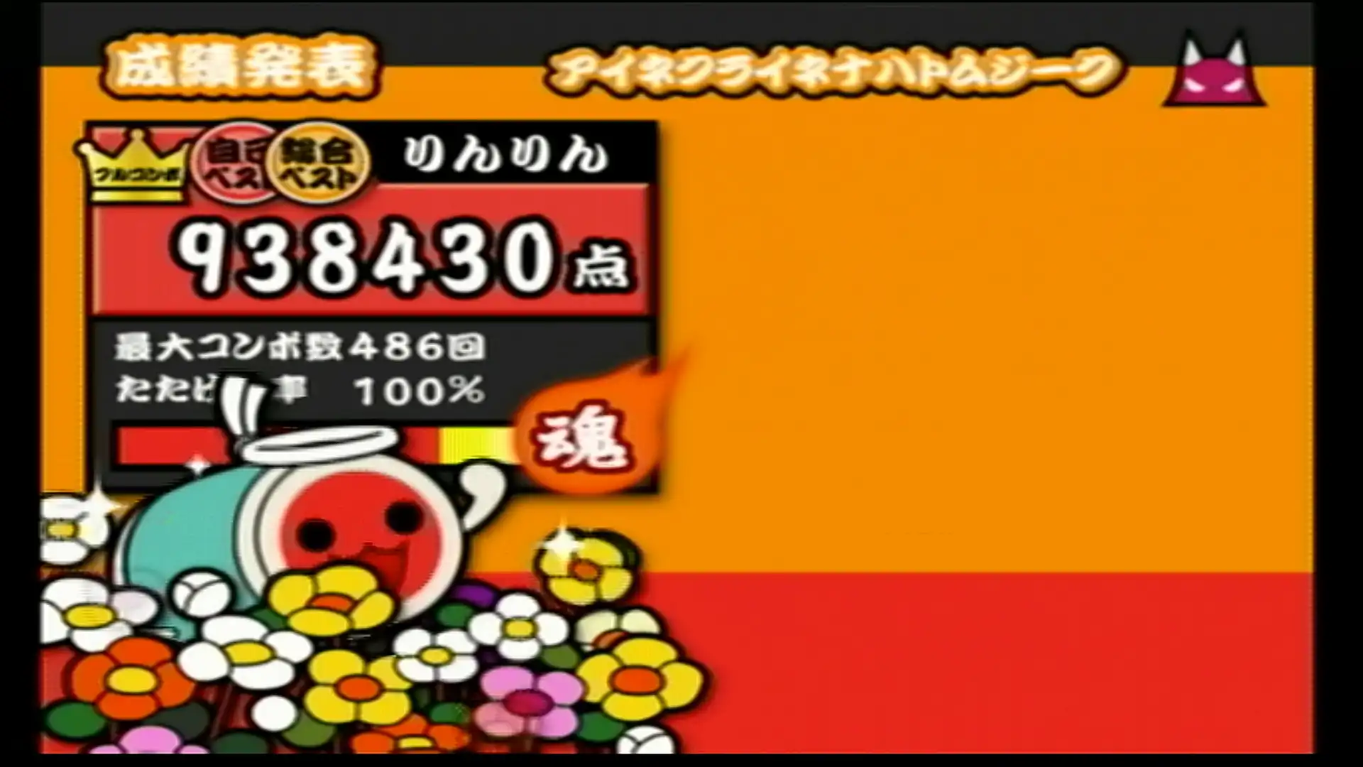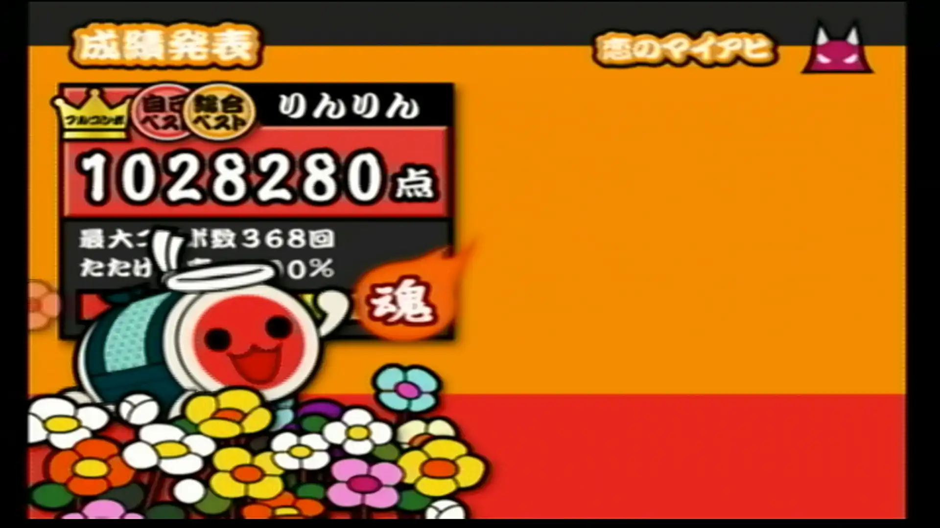 もう何も見ないでも叩けるんじゃないかってくらい聴いたしやった曲。 むずかしいコースにもだいぶお世話になりました。 この作品が初出で、最難関譜面(でいいと思う) ボタンだと24分コンボカッターがキツい。とにかく速く指を動かすこと。